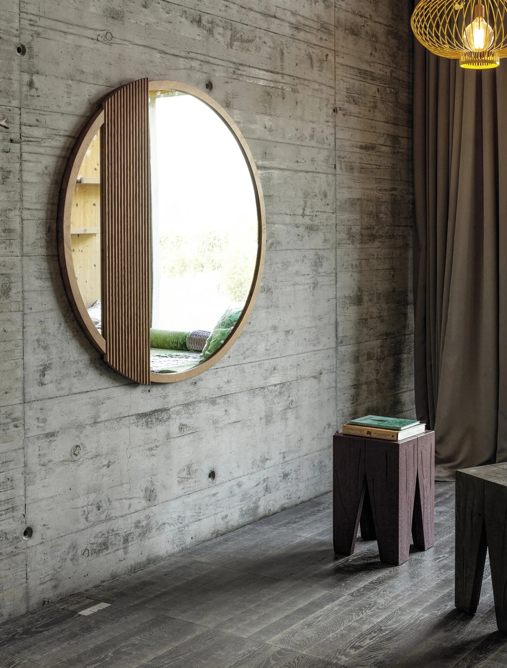 Complementi e specchi completano l'arredo di casa, occupando lo spazio in maniera utile e rendendolo assai funzionale e bello a vedersi. Nel nostro showroom potrai visionare in prima persona la qualità dei modelli di specchi moderni in legno del brand, proprio come questa soluzione in foto. Specchio rotondo Zero 16 di Devina Nais in legno: darà personalità e fascino a un locale ammobiliato con mobili ed elementi accessori dai richiami moderni. Assai versatili e multifunzionali, i Complementi moderni in legno rispondono a funzioni diverse: ultimano le doti di funzionalità e l'estetica dell'ambiente.