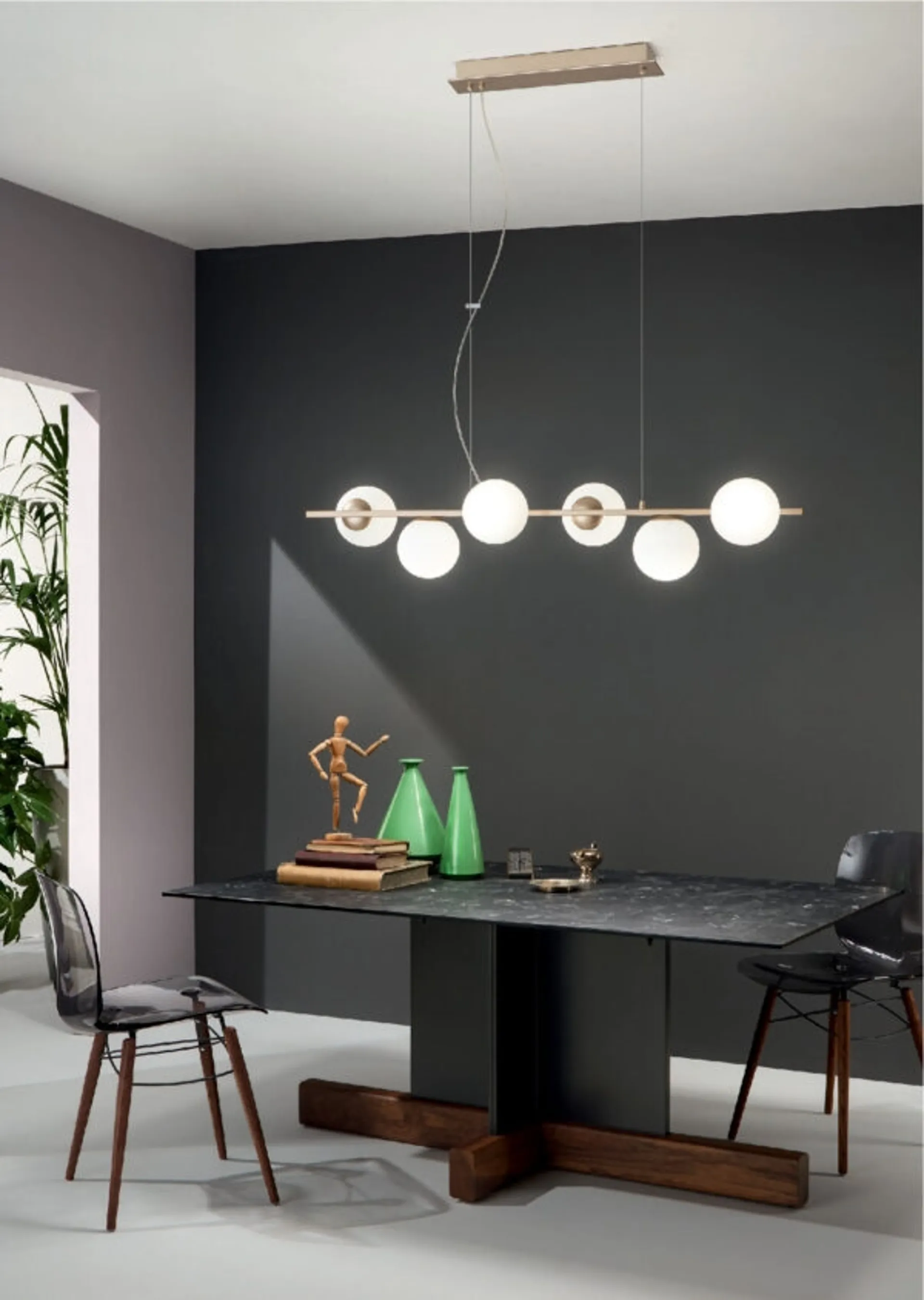L'apparecchio in foto emana una luce piacevole e con le sue linee trova posto in locali dai vari stili di arredo, esaltandone sempre il valore estetico al massimo. L'universo delle lampade comunica con un linguaggio particolare ma dialoga allo stesso tempo con l'arredo di casa, unendo le doti di praticità con quelle estetiche. Ondaluce presenta molteplici lampade a sospensione per interni in grado di connotare gli spazi con un elevato contenuto estetico, sempre in materiali durevoli. Non pone vincoli stilistici: Lampada a sospensione in vetro soffiato e metallo Monile di Ondaluce in vetro si connota per qualità di materiali e tecnologia.