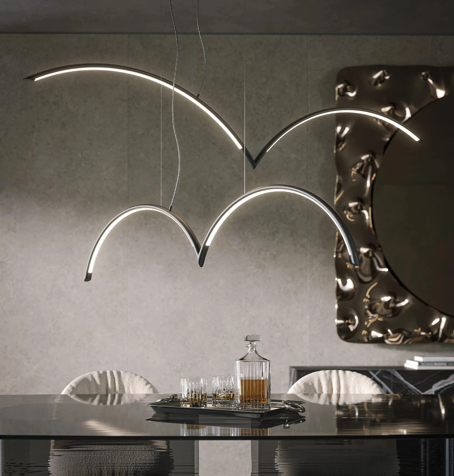 Lampada a sospensione Mood di Tonin Casa in metallo: abbellirà glilocali domestici come fosse un vero oggetto decorativo, creando atmosfere di grande fascino. Il mondo delle lampade è parte fondamentale di ogni ambiente poiché accompagna tutti i gesti che compiamo: design e innovazione tecnica si incontrano al meglio. Nel nostro showroom ci occupiamo di seguirti nello scegliere l'illuminazione domestica con le luci: vieni a vedere dal vivo la soluzione che fa per te. Tonin Casa è specializzata in campo illuminotecnico e propone una ricca gamma di lampade a sospensione per interni ideali per le tue esigenze abitative.