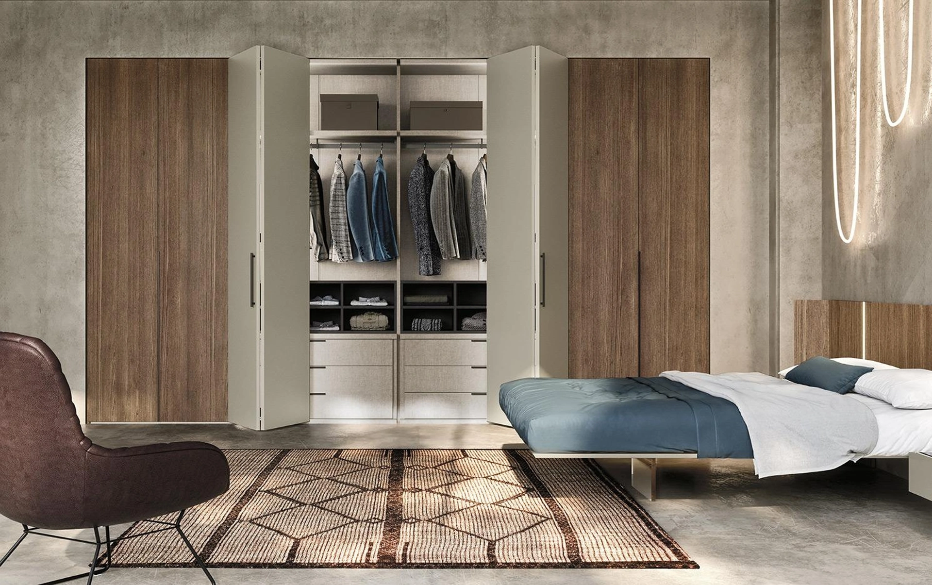 Durata e comfort sono gli aspetti che, insieme a un elevato contenuto estetico, distinguono tutti gli Armadi a muro design del marchio Mobilgam. Una ricca gamma di arredi in laccato opaco come questo guardaroba con ante a soffietto nell'immagine. Armadio con ante a soffietto Comp N12 di Mobilgam in laccato opaco: in un ricco catalogo di mobili ed elementi accessori, questo modello ti farà completare la tua zona del riposo come l'avevi immaginata. Armadio con ante a soffietto Comp N12 di Mobilgam: se vuoi arredatori professionisti per preventivi e progetti, realizza con noi la casa che hai sempre sognato. Se vuoi ricreare una stanza bella e di grande qualità, compila il form o vieni a trovarci per ottenere infromazioni, consigli e novità nell'ambito dell'Arredamento Casa.