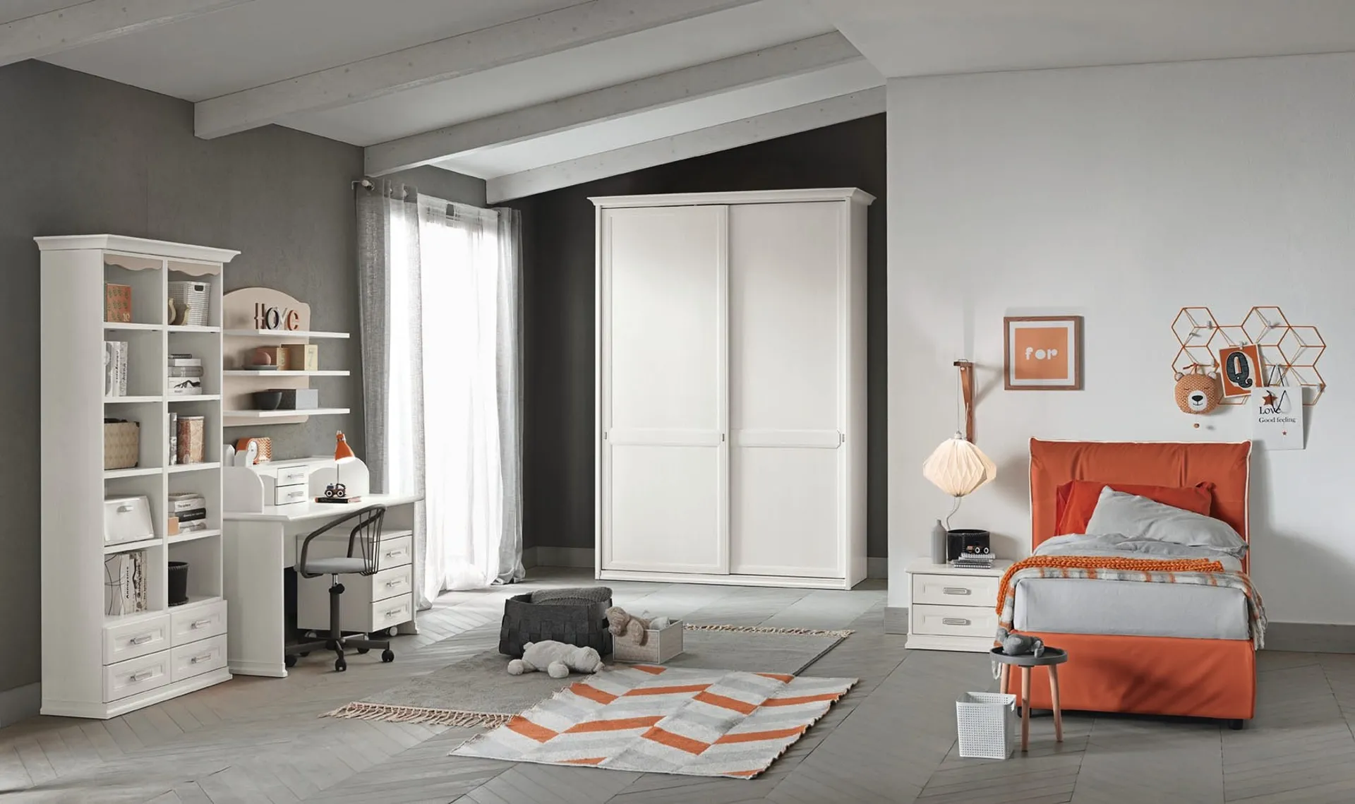 Colombini Casa mette a disposizione un ricco catalogo di elementi accessori da comporre su misura: troverai letto, armadio, scrivania, sedie e librerie. Se cerchi spunti creativi per arredare al meglio la stanza dei tuoi bambini, ti proponiamo la Cameretta Arcadia AC015 di Colombini Casa con finitura in melaminico. Nella progettazione della stanza dei piccoli affidati a noi: nel nostro showroom proponiamo tutte le più originali composizioni classiche per la loro camera. Questa proposta in melaminico ultima al meglio le qualità pratiche e l'estetica della camaretta, in quanto è capace di abbinare funzionalità ed ergonomia.