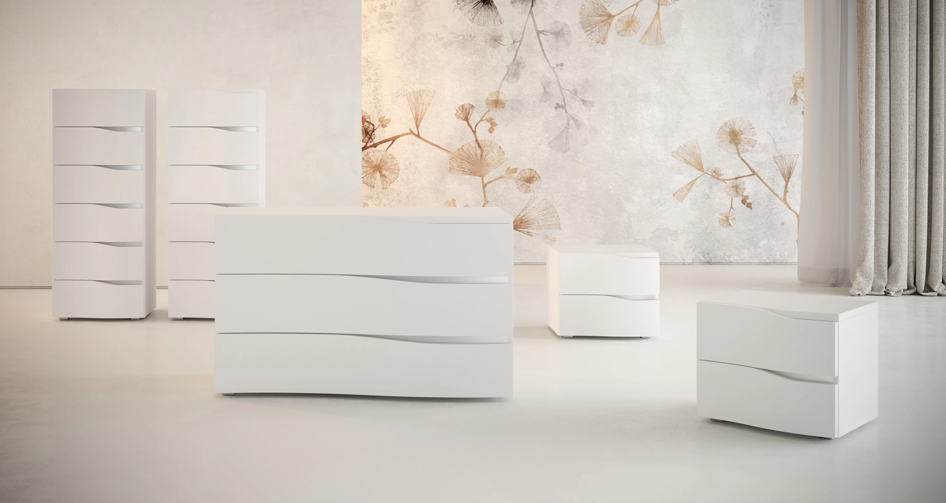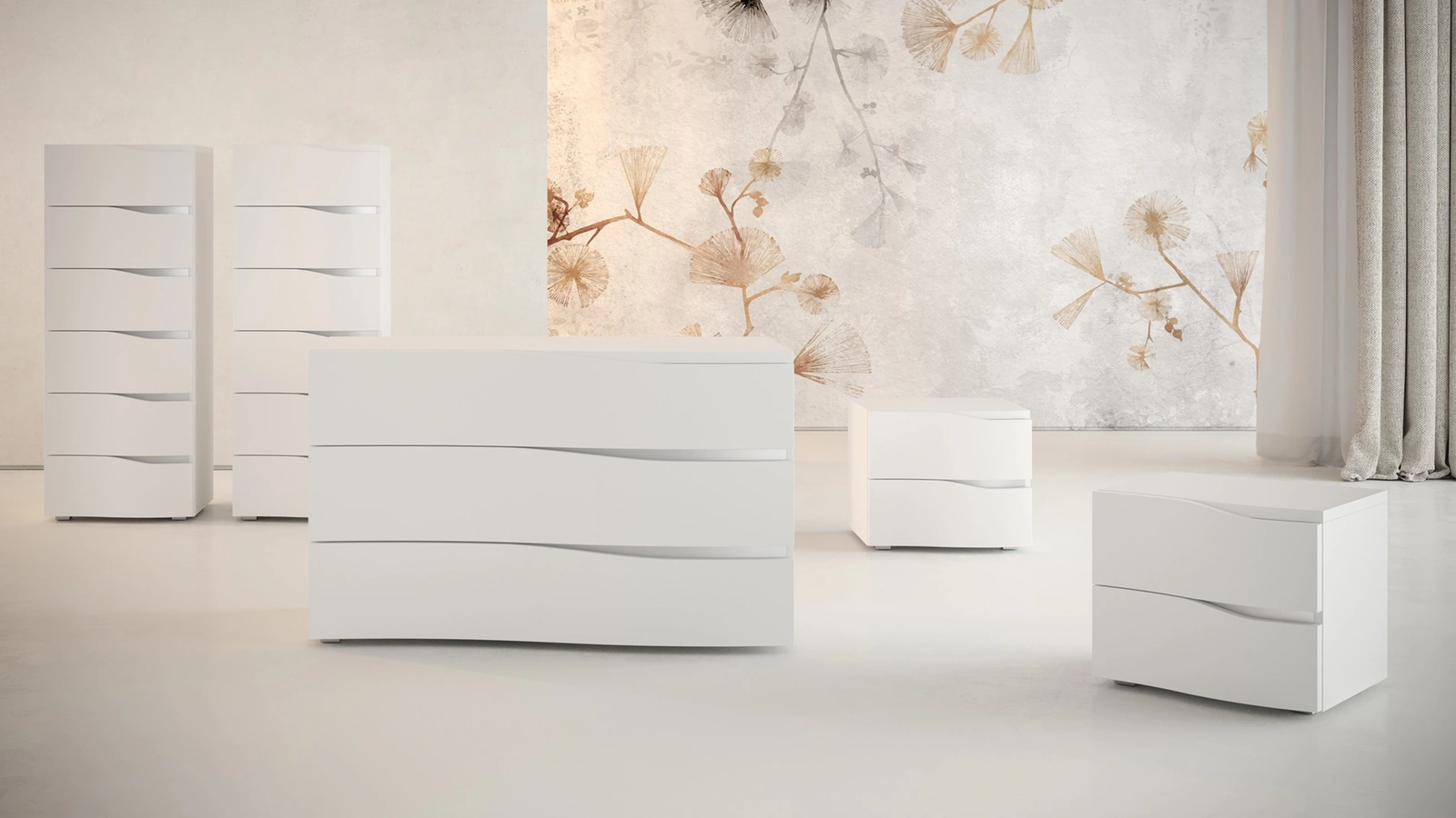 Ti domandi in che modo abbinare letti, armadi e comodini? Con il modello di Giessegi mostrato in foto avrai un mobile adeguato per un luogo dai richiami moderni. Materiali di qualità e lavorazioni eccellenti per il Gruppo Notte Damasco di Giessegi in in laccato opaco, disponibile in negozio con le altre diverse proposte della firma, per fare della zona del riposo un progetto di arredo che rifletta la tua personalità.