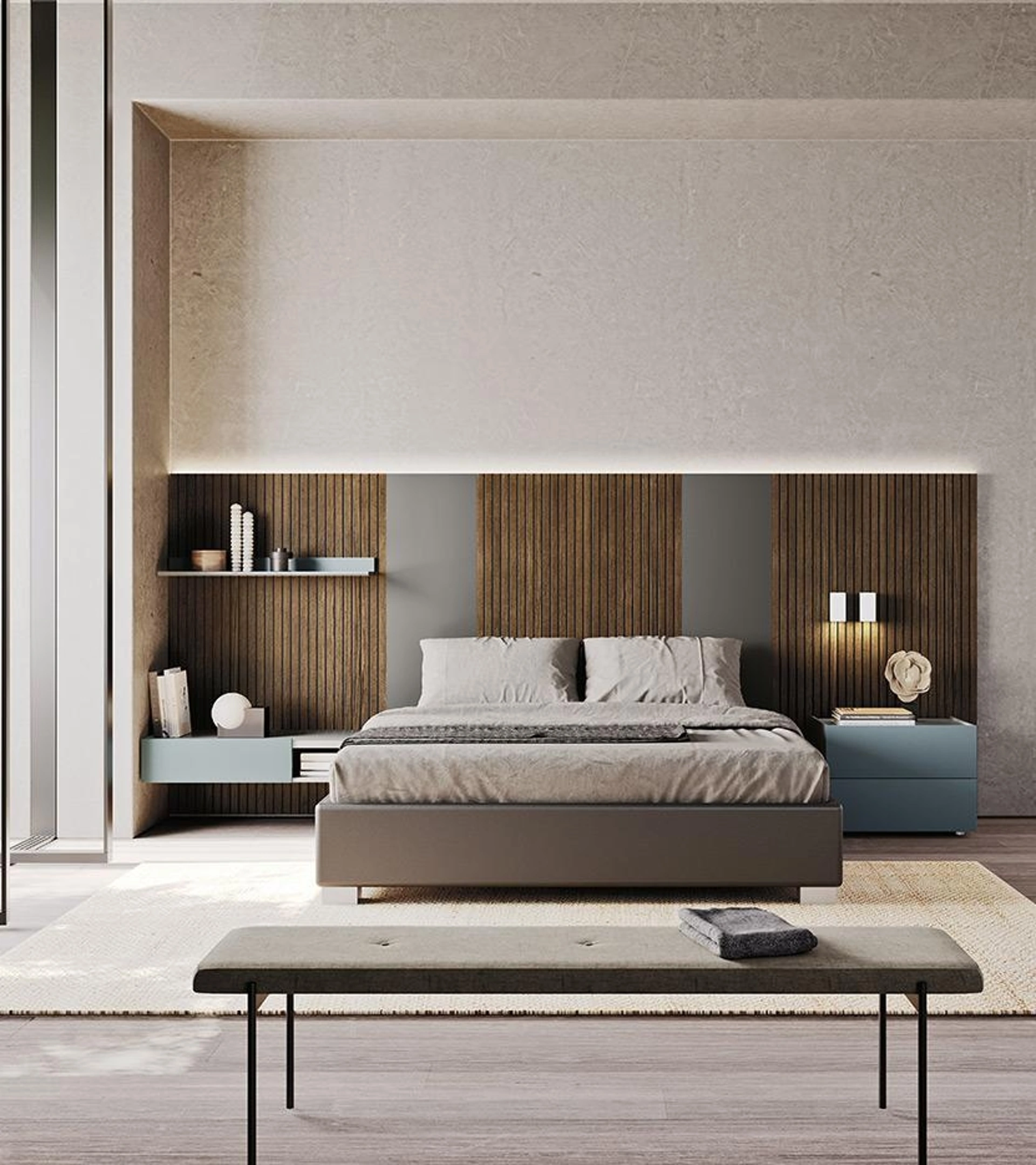 Il Letto matrimoniale Sistema Sipario di Mobilgam crea uno spazio accogliente e confortevole in ogni zona notte, assicurandoti il relax totale e un design unico. I Letti matrimoniali con testiera del marchio, leader nella produzione di Arredamento Casa per la zona del riposo, vengono progettati per essere abbinati a mobili ed elementi accessori di ogni tipo, come armadi e comò, abat jour e piantane. Durante la scelta della giusta tipologia di letto, valuta con cura le sue dimensioni, i materiali, la forma e il suo stile rispetto ai restanti pezzi d'arredo. Scegli cromie e finiture e realizza il tuo progetto d’arredo nella zona notte, progettandola proprio come l'hai sempre immaginata.