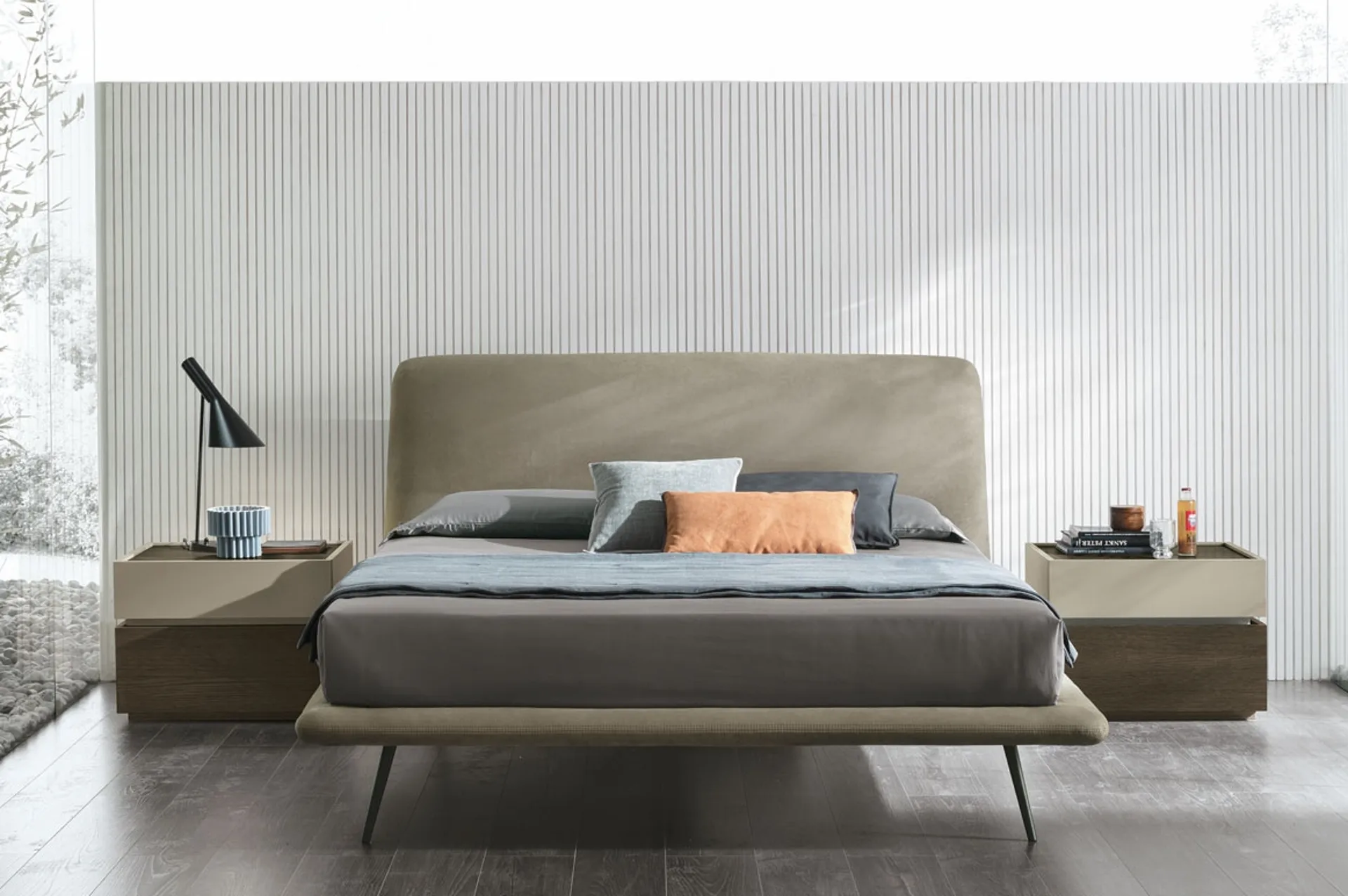 Il Letto matrimoniale con testiera Luna di Tomasella crea uno spazio familiare e confortevole in ogni zona notte, assicurandoti il sonno più profondo e uno stile unico. Se desideri una soluzione in tessuto, il modello mostrato in foto è contraddistinto da materiali pregiati e forme decise, che invitano a trascorrere un riposo sereno e rigenerante. Durante la scelta della giusta tipologia di letto, valuta con cura le sue misure, i materiali, la forma e il suo stile rispetto al resto degli arredi. Scegli cromie e texture e realizza il tuo progetto d’arredo nella zona notte, progettandola proprio come l'hai sempre sognata.