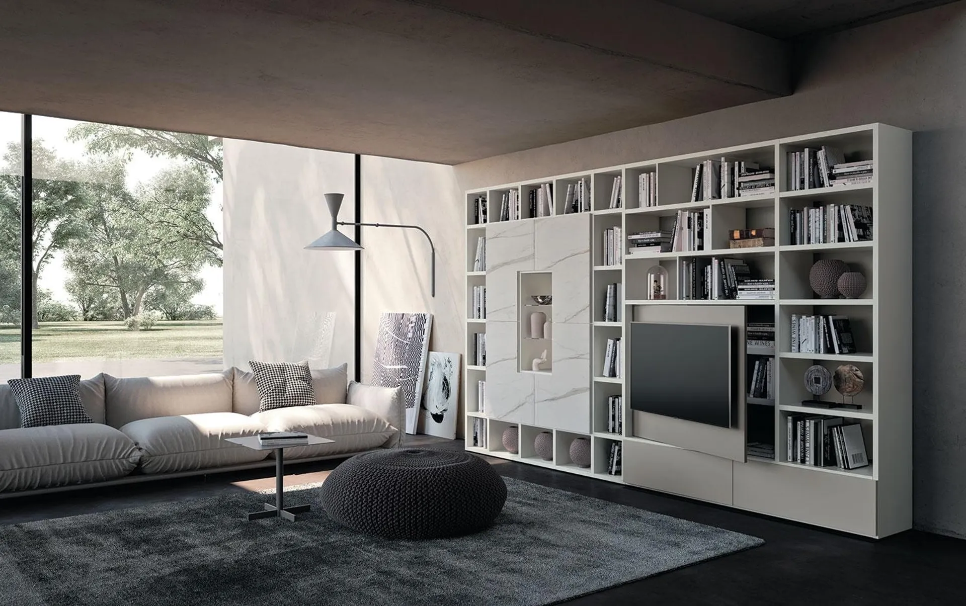 Se sei alla ricerca di unalibreria in laccato opaco, che sia robusta, funzionale, bella e ricercata, spulciare le nostre soluzioni moderne ti aiuterà a trovare il modello che fa al caso tuo. Decorare il living non è difficile: scegli l'adeguata tipologia di libreria con cui arredare l'ambiente e valorizzare il mood dello spazio. Gli arredamenti per la zona giorno, come le Librerie a muro, permettono di mantenere lo spazio in ordine contenendo libri, riviste e oggettistica varia. La Libreria a muro Horizon 943 di Mobilgam qui visibile è la scelta ideale per uno spazio pratico e operativo nonché bello a vedersi.