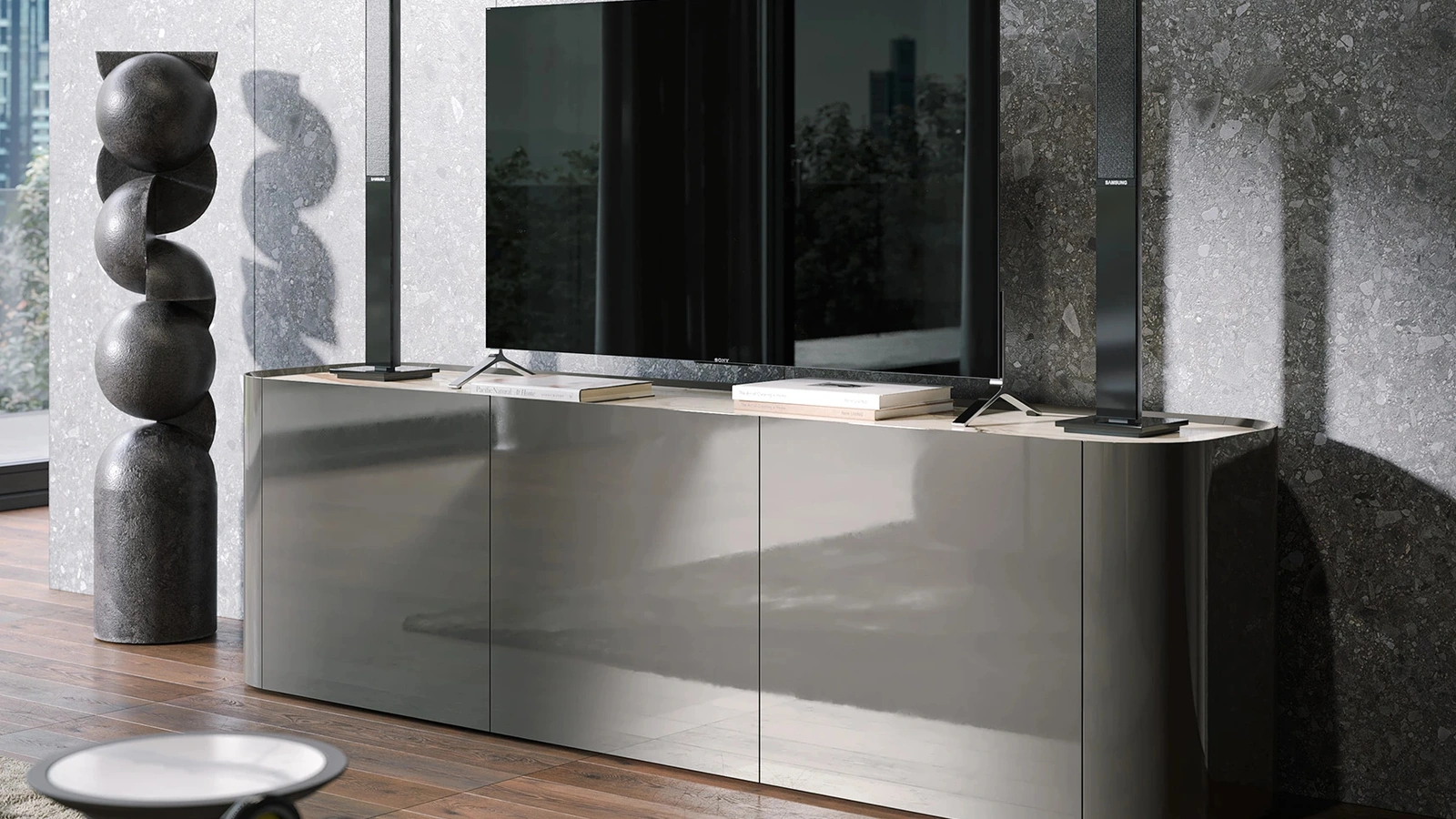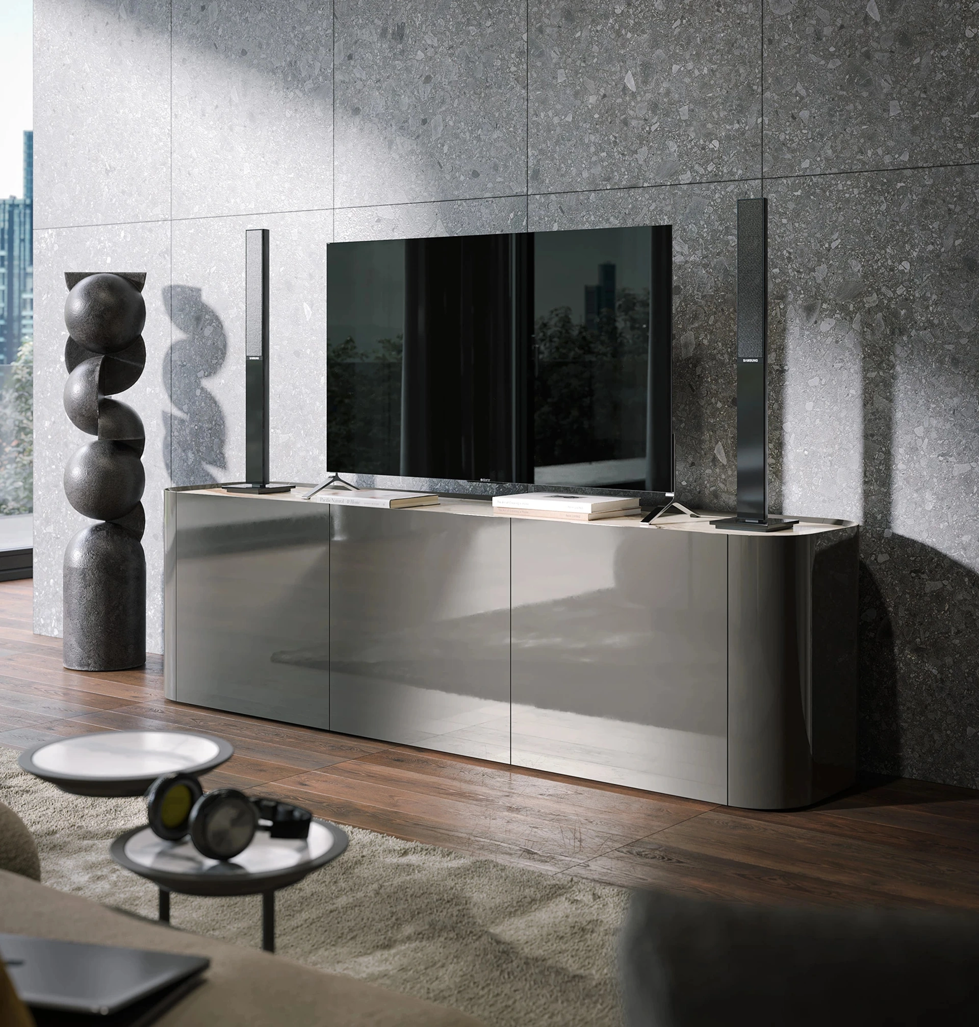 L'acquisto delle Madie per il soggiorno o per la zona pranzo è vincolata allo spazio disponibile, ma coinvolge anche lo stile del locale e le proprie necessità. Le Madie servono per organizzare oggettistica varia, libri e giornali, nonché a organizzare al meglio il locale mixando al meglio doti di funzionalità e stile. Se vuoi una madia in laccato lucido da collocare nella tua abitazione, non farti scappare l'occasione di toccare con mano le nostre esclusive composizioni. Per un soggiorno o una zona pranzo di tutto rispetto, opta per questa Madia Clyde porta TV di Tonin Casa in laccato lucido tra le molteplici proposte moderne del brand.