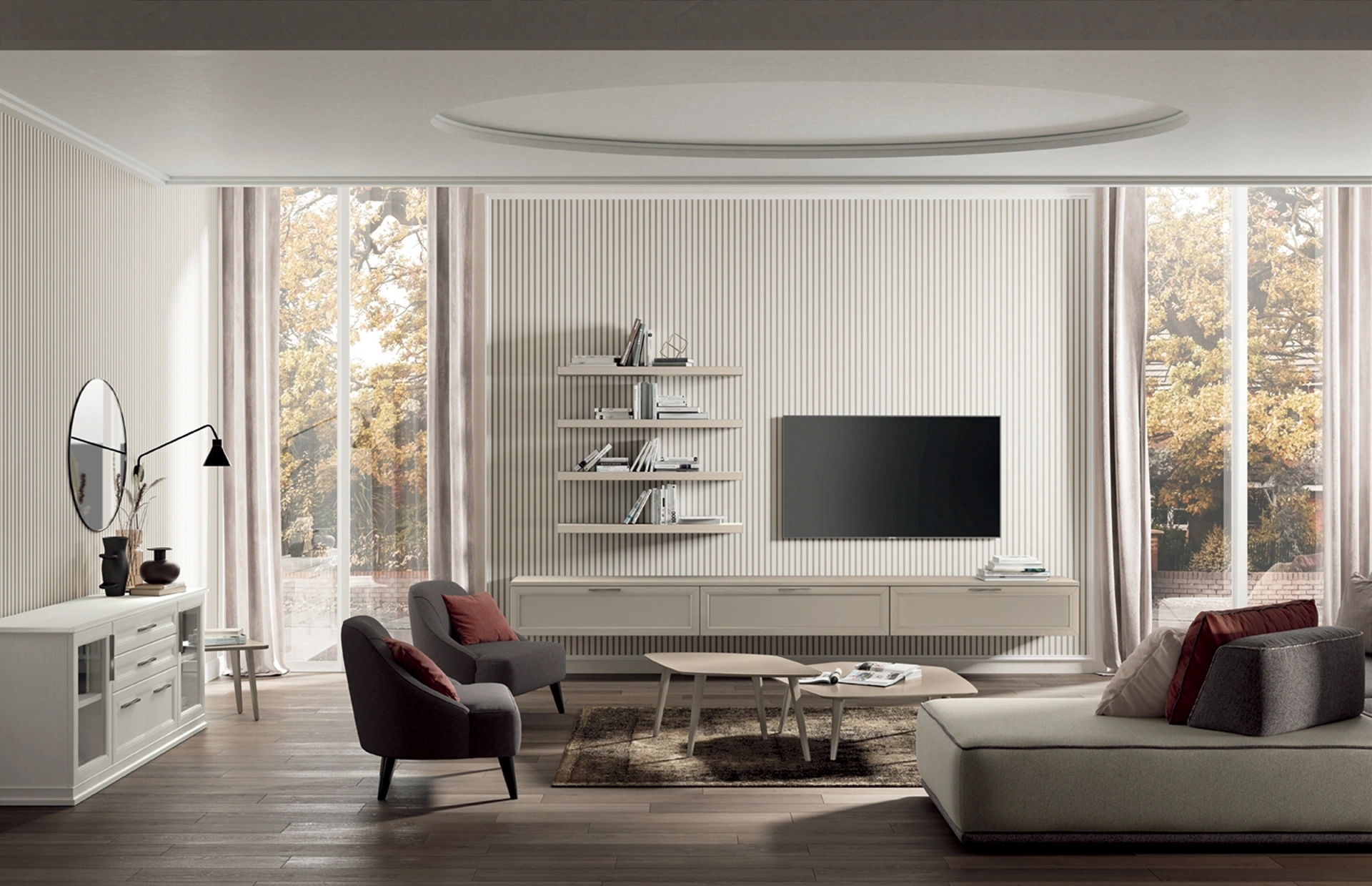 Colombini Casa offre a catalogo innovativi modelli di mobili soggiorno, diversi per stile e conformazioni, texture e elementi: scopri nel nostro punto vendita l'Arredamento Casa delle migliori marche. Dato che il soggiorno deve essere uno spazio agevole e bello da vedere, sono molto utili alcuni arredi belli e pratici come le Pareti Attrezzate. I mobili soggiorno in melaminico dalle linee classiche come il modello nella fotografia sono veramente eclettici e capaci di ammobiliare il living valorizzando ogni angolo. Lasciati ispirare da un ricco catalogo di arredi per la zona giorno e potrai trovare la parete attrezzata che fa per te.