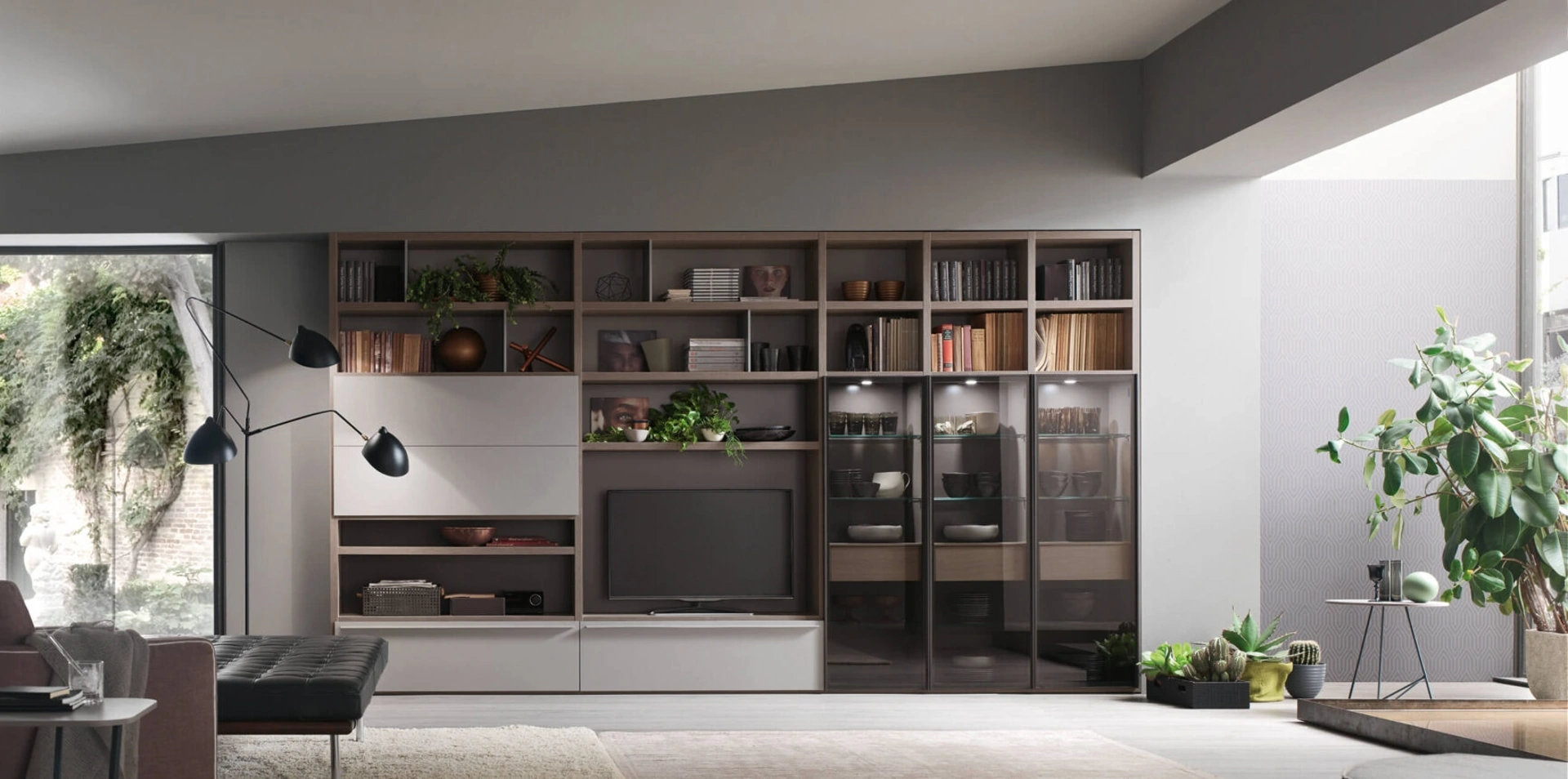 Maronese mette a disposizione inediti modelli di mobili soggiorno, diversi per stile e forme, texture e elementi: scopri nel nostro punto vendita l'Arredamento Casa delle migliori marche. Lasciati ispirare da un ricco catalogo di mobili per la zona giorno e troverai la parete attrezzata che fa al caso tuo. I mobili soggiorno in laccato opaco dalle linee moderne come il modello nell'immagine sono veramente eclettici e capaci di ammobiliare il soggiorno ottimizzando ogni angolo. La Parete Attrezzata Sistema Spalla Comp SA2217 di Maronese nell'immagine è una tra le più originali soluzioni d’arredo sul mercato: grandi doti di componibilità e le diverse opportunità di progettazione la rendono bella e funzionale.