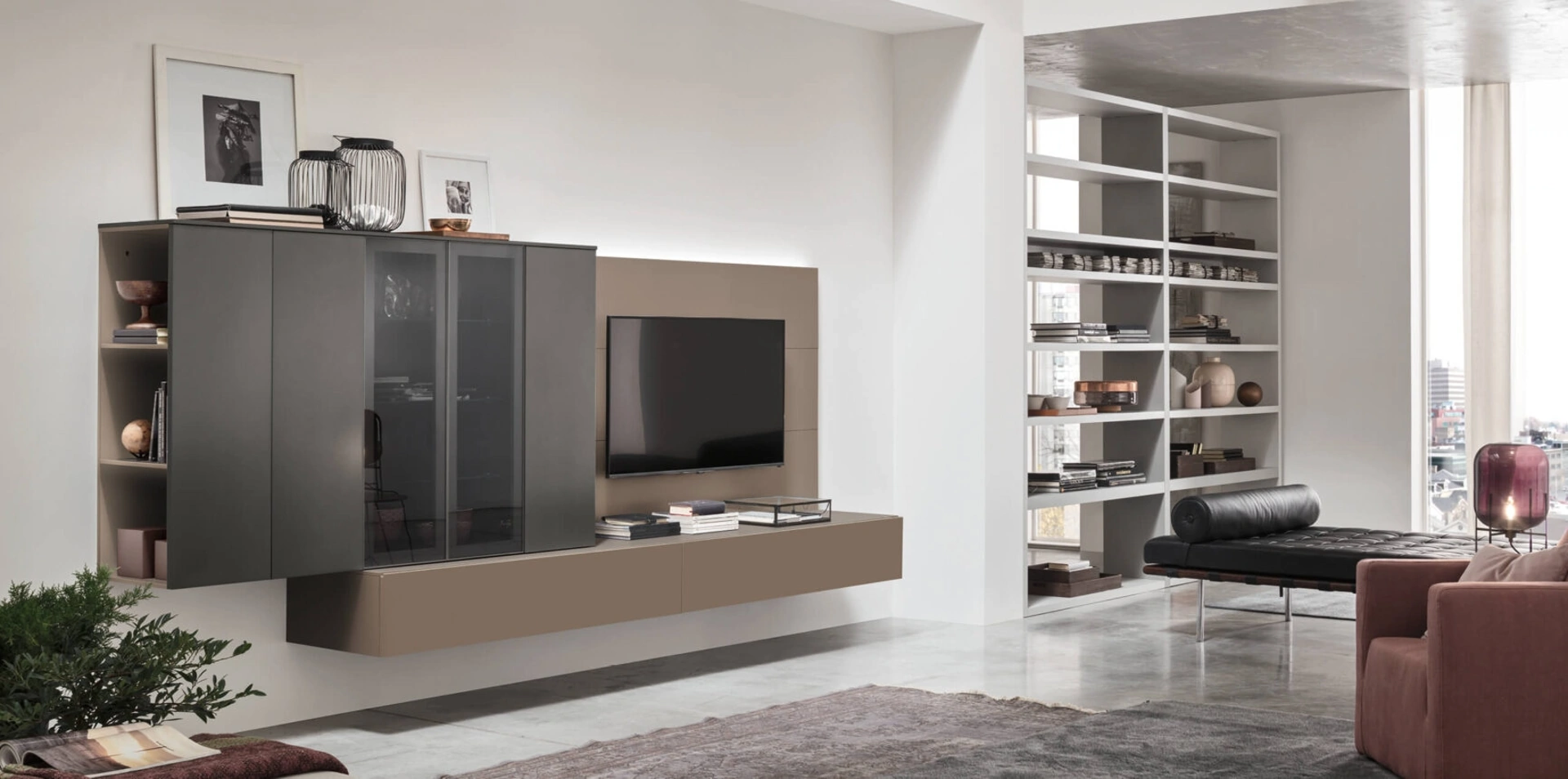 Attraverso un gioco dinamico di accostamenti fra accessori a giorno o vani chiusi, le Pareti Attrezzate moderne arredano il soggiorno usufruendo al meglio di ogni spazio. Le Pareti Attrezzate hanno conquistato un posto di primo piano nella zona giorno delle nostre case: sono arredi plurifunzionali e salvaspazio sempre realizzabili su misura per te. Per informazioni e preventivi sulla Parete Attrezzata Unix Comp SU2113 di Maronese in foto contattaci! Il modello proposto è realizzato in laccato opaco, ma grazie ad una grande varietà di finiture, cromie e conformazioni, potrà adattarsi a stili di ogni genere.